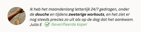 Onze sieraden zijn 100% waterproof, dus je hoeft ze nooit uit te doen tijdens je dagelijkse routine!