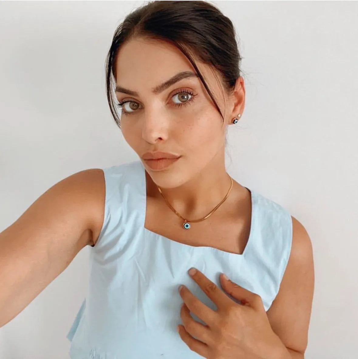 We creëerden een boze oog juweel dat zowel hedendaags als tijdloos is, gemaakt van premium RVS met 18K goud afwerking.